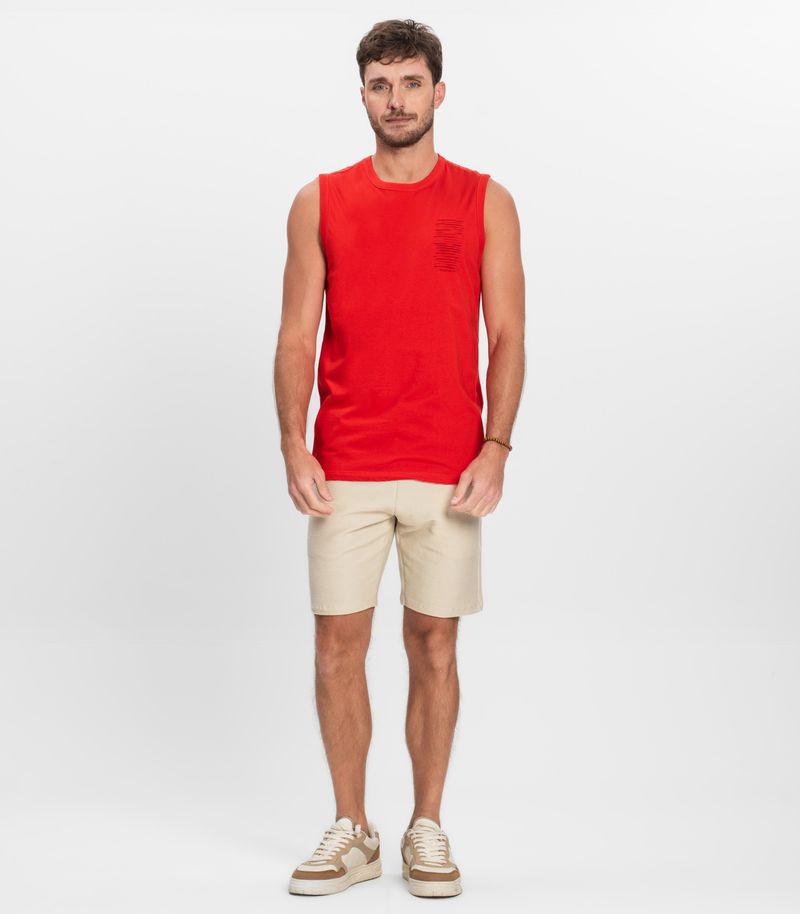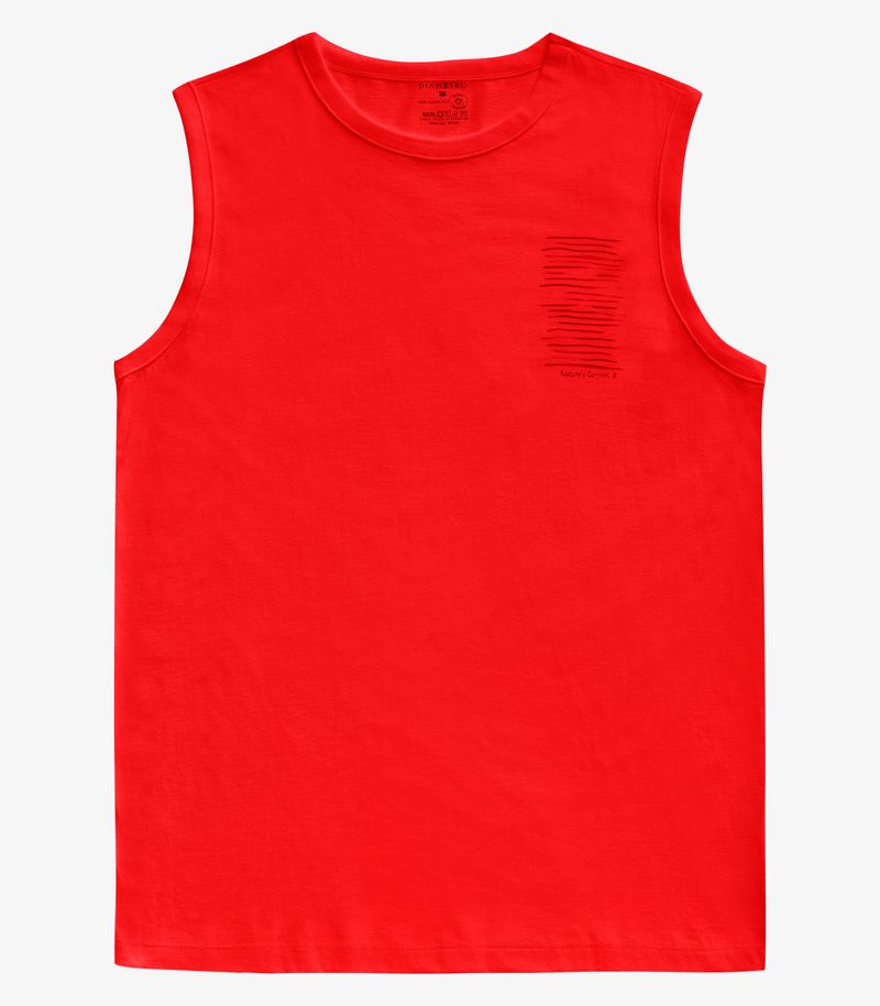A Regata Masculina Diâmetro é confeccionada em meia malha, garantindo leveza e conforto para o dia a dia. Possui estampa localizada no peito, decote e cavas com acabamento em friso que proporcionam um caimento moderno e bem estruturado. A barra conta com bainha feita com costura dupla, reforçando a durabilidade da peça. Ideal para compor looks casuais com estilo e praticidade.