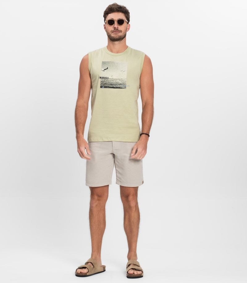 A Regata Masculina Diametro é confeccionada em meia malha, oferecendo leveza e conforto para os dias mais quentes. Possui estampa localizada na parte frontal, com visual moderno e cheio de estilo. O acabamento do decote e das cavas é feito com friso aplicado, garantindo melhor caimento. A barra tem acabamento com bainha reforçada e costura dupla, proporcionando maior durabilidade. Ideal para compor looks casuais e descontraídos.