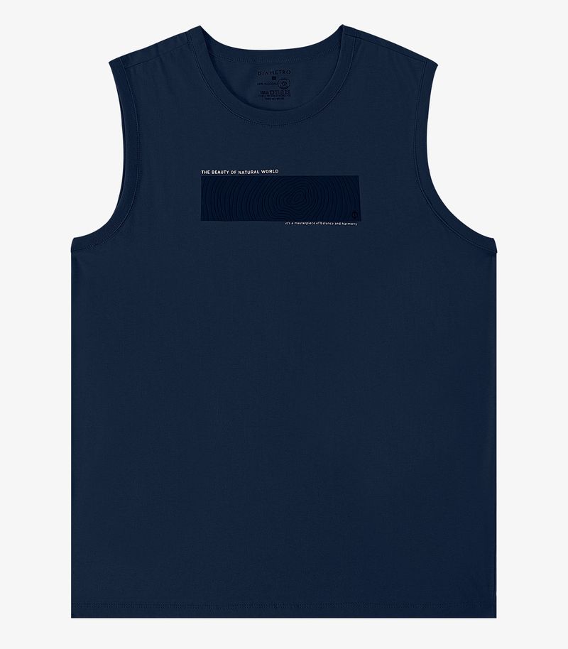 Machão Masculino Diametro, confeccionado em meia malha de toque leve. Possui base lisa com estampa emborrachada, decote redondo e cavas com acabamento em friso, detalhe em tampografia e barra finalizada em bainha para melhor caimento. Peça versátil e fresca, ideal para compor looks casuais que unem conforto, estilo e praticidade.