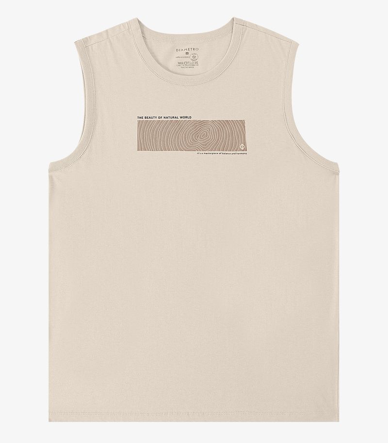 Machão Masculino Diametro, confeccionado em meia malha de toque leve. Possui base lisa com estampa emborrachada, decote redondo e cavas com acabamento em friso, detalhe em tampografia e barra finalizada em bainha para melhor caimento. Peça versátil e fresca, ideal para compor looks casuais que unem conforto, estilo e praticidade.