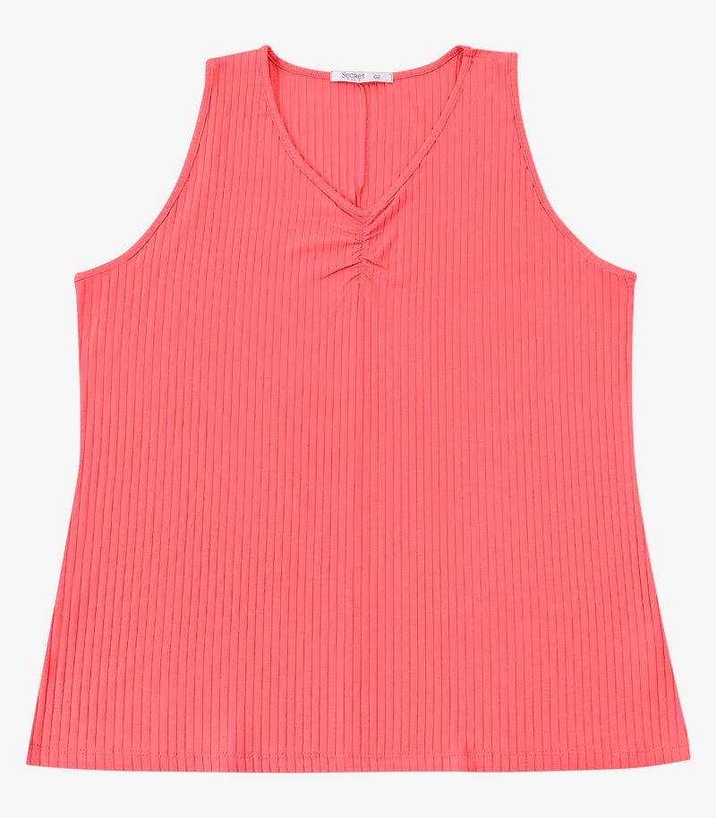HomePlus SizeFemininoBlusas e CamisetasRegata Plus Size Em Ribana Canelada Secret Glam Rosa