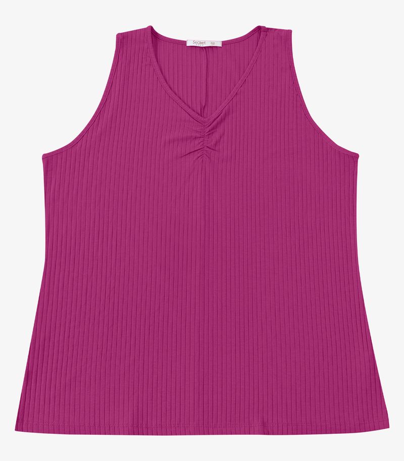 Regata Plus Size Em Ribana Canelada Secret Glam Roxo
