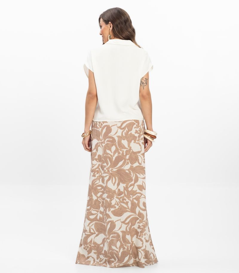 Saia Longa Feminina Endless, confeccionada em linho com estampa digital exclusiva. Possui cós virado com elástico interno rebatido, recorte central com abertura no acabamento limpo e pespontado, que confere charme e fluidez ao caimento. Com comprimento elegante e toque aconchegante, alia conforto e sofisticação, sendo perfeita para composições modernas em momentos casuais ou passeios ao ar livre.
