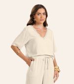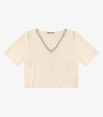 HomeFemininoBlusas e CamisetasCamisetasT- shirt em V Feminina Endless Bege