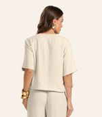 T-shirt Feminina Endless, confeccionada em Linho Strong. Modelo de base lisa, com decote em V frontal acabamento limpo e aviamento sobreposto. Mangas com bainha na barra e no comprimento para melhor caimento. Nas costas, apresenta decote redondo e etiqueta interna, unindo sofisticação e acabamento impecável.