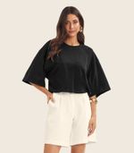 T- Shirt Feminina em Malhão e Ribana Endless Preto