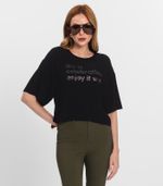 A T-Shirt Feminina Endless é confeccionada em viscose creponada, tecido leve e com toque agradável. Possui modelagem ampla com cava deslocada, garantindo conforto e um visual moderno. A peça conta com estampa localizada com detalhes em esfera e foil, que adicionam brilho e sofisticação ao look. Ideal para compor produções estilosas e versáteis, combina praticidade com um toque fashion.