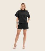 T- Shirt Feminina Gola Alta em Malhão Endless Preto