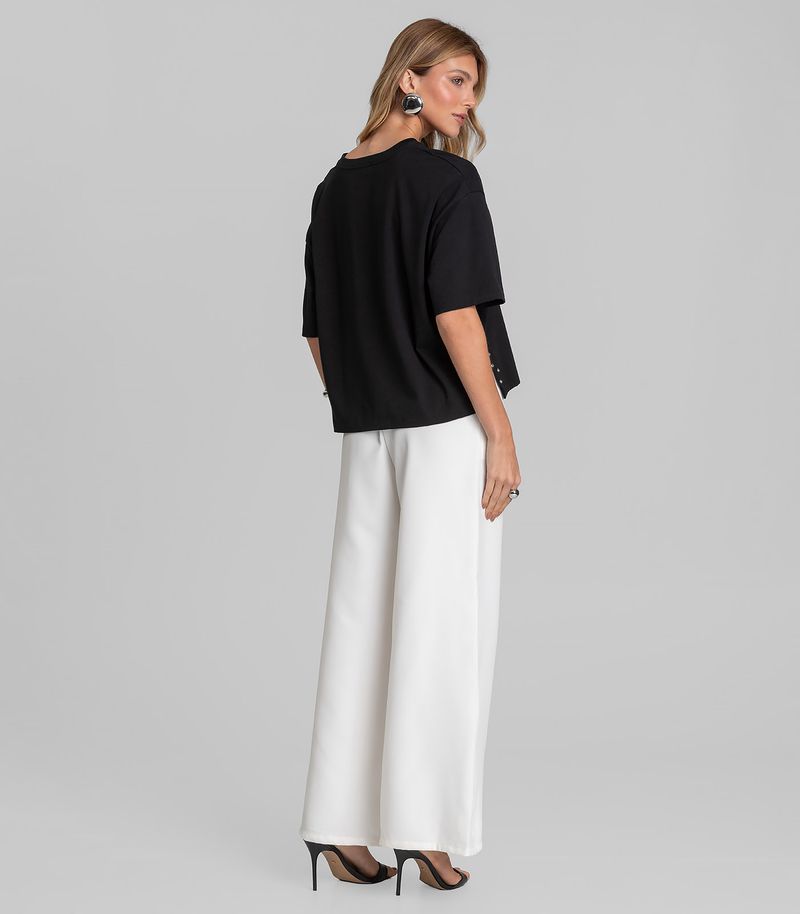 T-shirt Feminina Manga Curta Box Dianna, confeccionada em malha cotton leve, que proporciona toque macio e excelente conforto. Possui base lisa, decote redondo com friso e acabamento em bainha nas mangas e no comprimento. O grande destaque fica por conta das aberturas laterais adornadas com delicadas pedras, que agregam charme e sofisticação ao visual. Uma peça versátil e atemporal, ideal para compor looks elegantes ou casuais com praticidade e estilo.