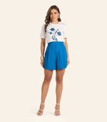 T-shirt feminina Endless, confeccionada em meia malha com detalhes em ribana. O modelo apresenta decote levemente arredondado em ribana com friso e reforço nas costas, além de estampa frontal combinada a bordados em linha e lantejoulas, que agregam sofisticação. Possui mangas curtas com bainha, comprimento até o quadril também finalizado com bainha e costas de base lisa, unindo conforto e estilo refinado.