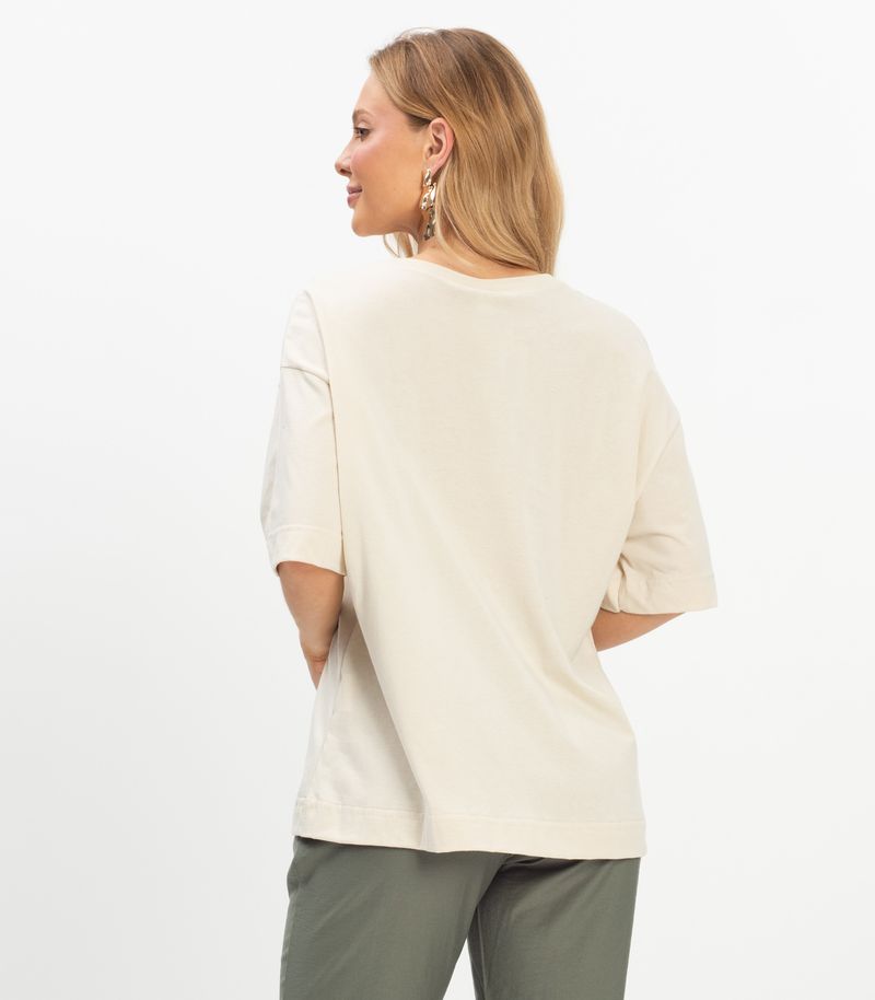 T- Shirt Overzised Feminina Rovitex, confeccionada em meia malha de toque agradável. Traz base lisa com estampa localizada no centro da peça, decote redondo em retilínea com reforço em friso nas costas, além de mangas e barra com acabamento em bainha para caimento impecável. Conta ainda com etiqueta interna nas costas. Uma peça versátil e refinada, ideal para compor looks casuais com elegância e sofisticação.