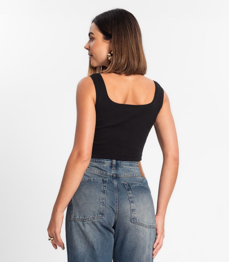 Top Cropped Ribana Básico Rovitex Preto