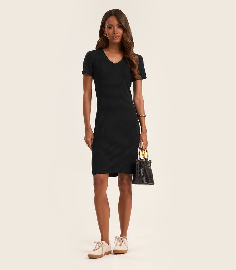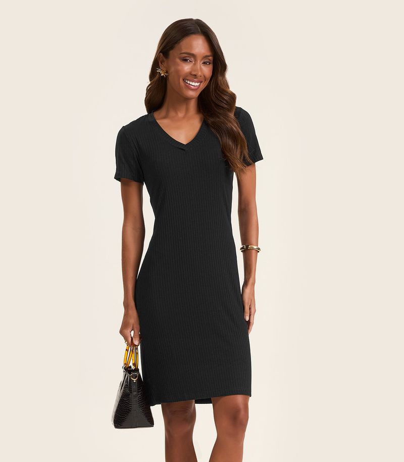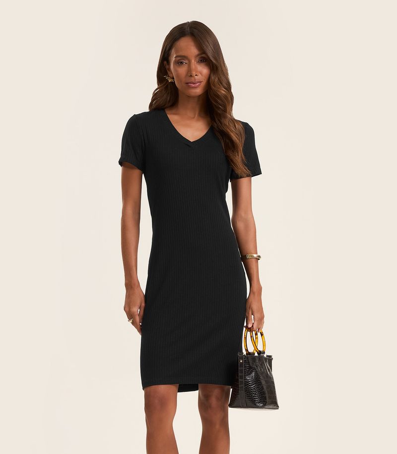 HomeFemininoVestidosCurtoVestido Acinturado Em Ribana Canelada Rovitex Preto