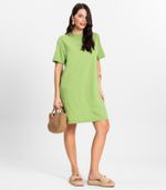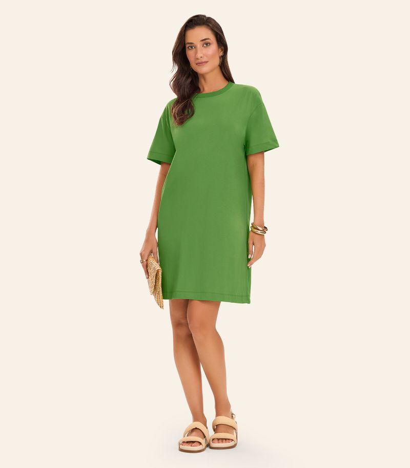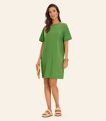 O Vestido Básico Feminino Rovitex é confeccionado em Meia Malha, um tecido leve e macio que proporciona conforto e um caimento soltinho. Com modelagem T-shirt, a peça traz um visual despojado e moderno. O decote redondo em friso garante um acabamento delicado, enquanto os ombros levemente deslocados e as mangas curtas conferem um toque estiloso e descontraído. Seu comprimento acima do joelho torna o vestido ideal para composições versáteis, perfeitas para qualquer ocasião.