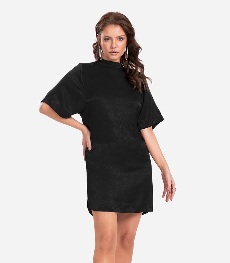 O Vestido Curto Feminino Endless é uma peça sofisticada e elegante, confeccionada em slub acetinado, que proporciona um toque suave e brilho sutil. A gola alta dupla confere um visual moderno e refinado, enquanto os dois botões no pescoço, nas costas, adicionam um detalhe delicado e único. A gota com friso traz um toque de charme, tornando o vestido ainda mais especial. Ideal para ocasiões que exigem sofisticação e estilo, combinando beleza e conforto.