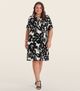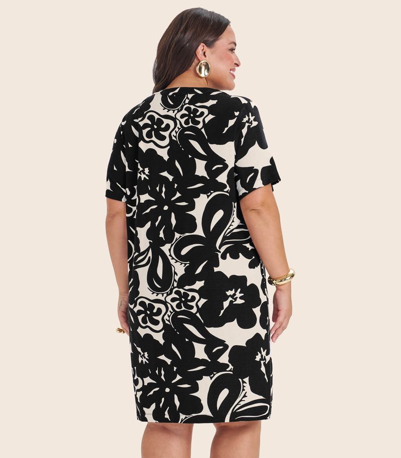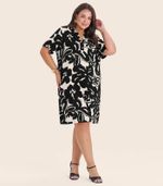 Vestido Curto Feminino Plus Size Secret Glam confeccionado em viscose maquinetada, leve e confortável. Possui gola com acabamento estruturado e detalhe pespontado, abertura frontal com vista reforçada, fechamento com travete e estampa rotativa exclusiva. As mangas têm bainha dupla e reforçada, assim como a barra, garantindo melhor caimento e durabilidade. Ideal para quem busca estilo e conforto no dia a dia.