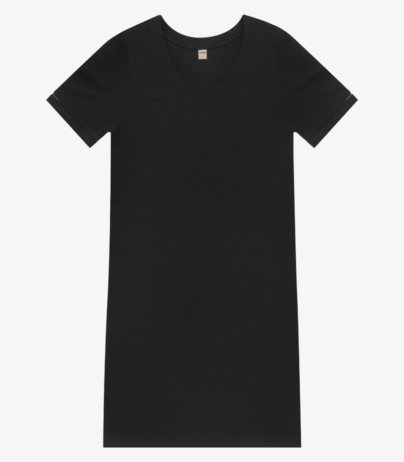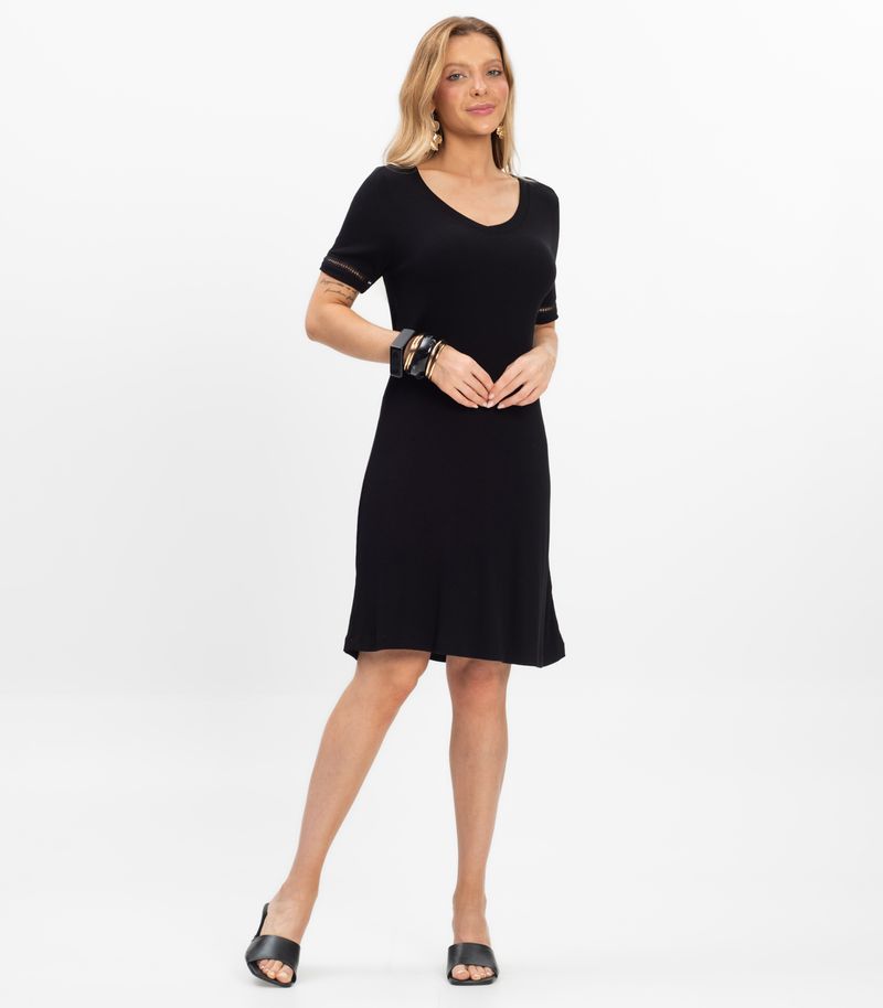 Vestido Curto Feminino Rovitex, confeccionada em ribana de viscose de toque agradável. Traz base lisa, entremeio nas mangas, decote V, barra com acabamento em bainha para caimento impecável. Conta ainda com etiqueta interna. Uma peça versátil e refinada, ideal para compor looks casuais com elegância e sofisticação.