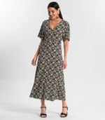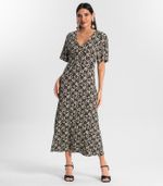 O Vestido Estampado Feminino Midi é a escolha perfeita para quem busca elegância e conforto. Confeccionado em viscotorcion, tecido leve e fluído, proporciona um caimento impecável. Seu design sofisticado conta com manga ampla godê, agregando charme e movimento à peça. O decote V valoriza a silhueta, trazendo um toque feminino e delicado. A saia evasê completa o visual com leveza e fluidez, garantindo versatilidade para diversas ocasiões, do casual ao sofisticado.