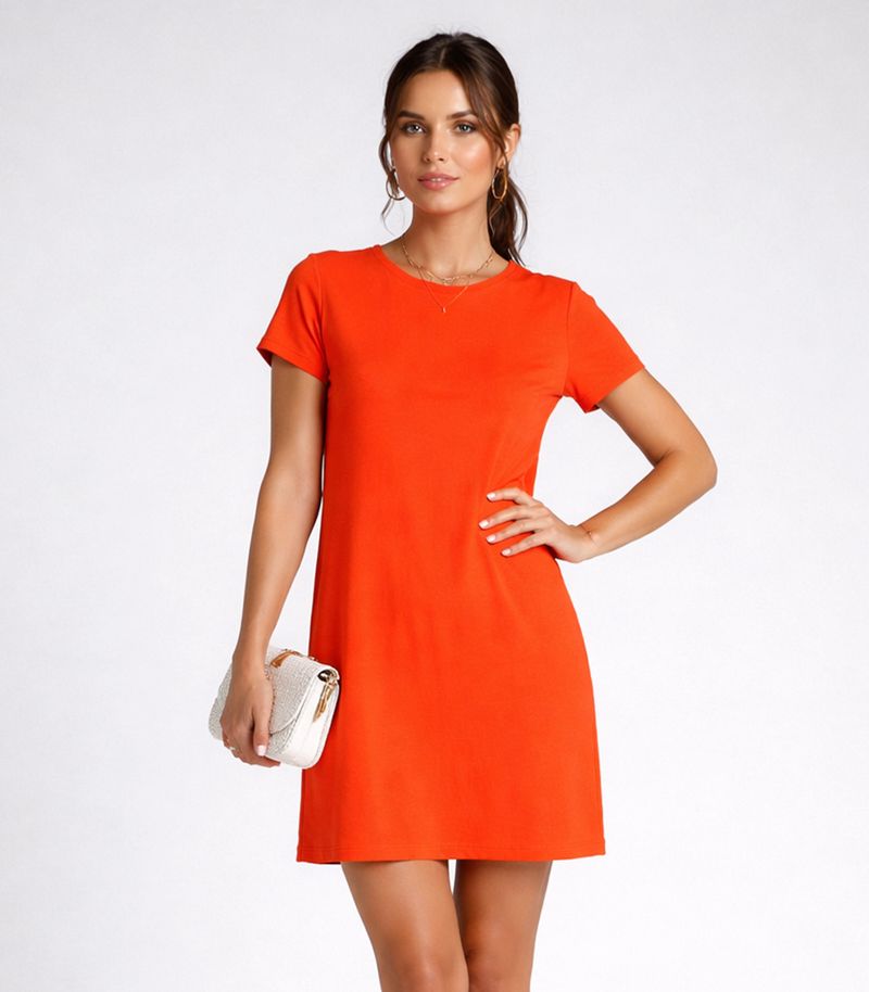 Vestido Feminino Curto Com Manga Infinita Cor Laranja