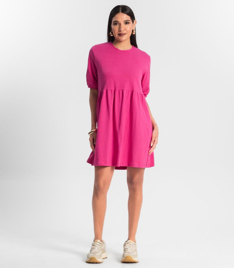 O Vestido Feminino Curto Rovitex é a escolha ideal para um look moderno e cheio de estilo. Confeccionado em malhão, proporciona caimento estruturado, toque macio e conforto ao vestir. O modelo saltador se destaca pelo design versátil e elegante, com manga 3/4 que adiciona charme e praticidade. O decote redondo na frente traz delicadeza, enquanto o decote quadrado nas costas, com friso para amarração, cria um detalhe sofisticado. Perfeito para ocasiões casuais ou eventos especiais.