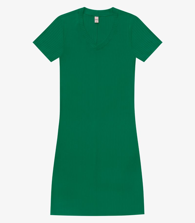 Vestido Feminino Em Ribana Canelada Rovitex Verde