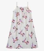 Vestido Infantil Feminino Select confeccionado em meia malha, com estampa rotativa que traz charme à peça. Possui decote frontal e posterior com elástico rebatido, garantindo conforto e bom caimento. As alças são em friso, delicadas e firmes. O comprimento é midi, com bainha na barra para um acabamento mais bonito. Conta ainda com recorte central nas costas, que valoriza o ajuste e o visual da peça. Ideal para dias leves e cheios de estilo.