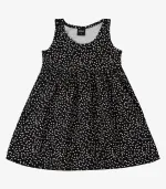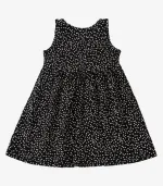 Vestido Infantil Feminino Select confeccionado em viscotorcion, com estampa rotativa que traz leveza e charme à peça. Possui decote redondo e cavas com acabamento em friso. Na altura da cintura, conta com recorte franzido que valoriza o caimento. O comprimento vai até um pouco acima dos joelhos e apresenta delicados babados com acabamento em bainha, garantindo movimento e um toque especial ao visual.