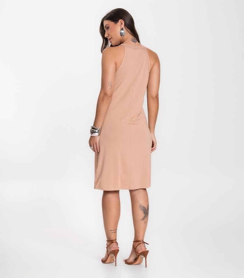 Vestido Feminino Infinita Cor, confeccionado em visco bali leve e fluido. Possui decote e cavas com acabamento em friso, comprimento midi com bainha na barra para um caimento elegante e recorte central nas costas, que valoriza o design da peça.