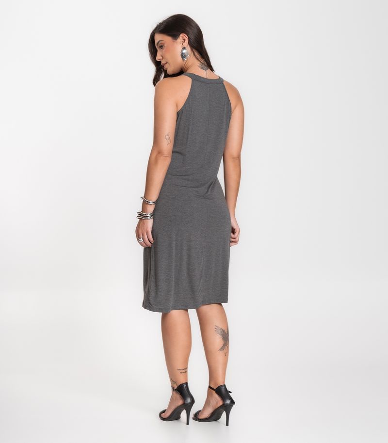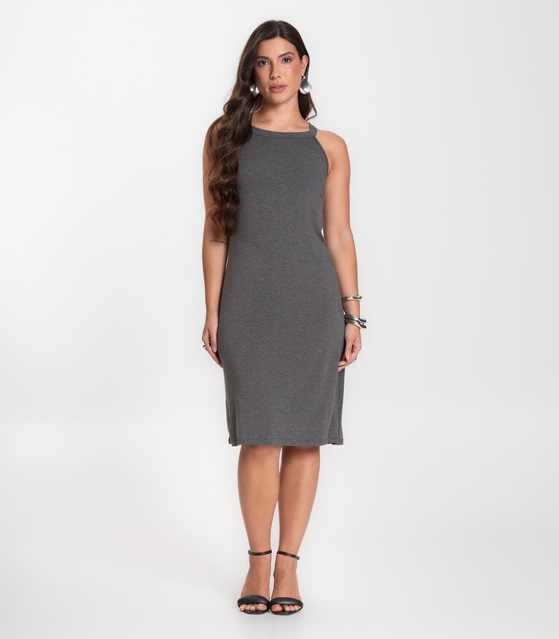 Vestido Feminino Infinita Cor, confeccionado em visco bali leve e fluido. Possui decote e cavas com acabamento em friso, comprimento midi com bainha na barra para um caimento elegante e recorte central nas costas, que valoriza o design da peça.