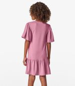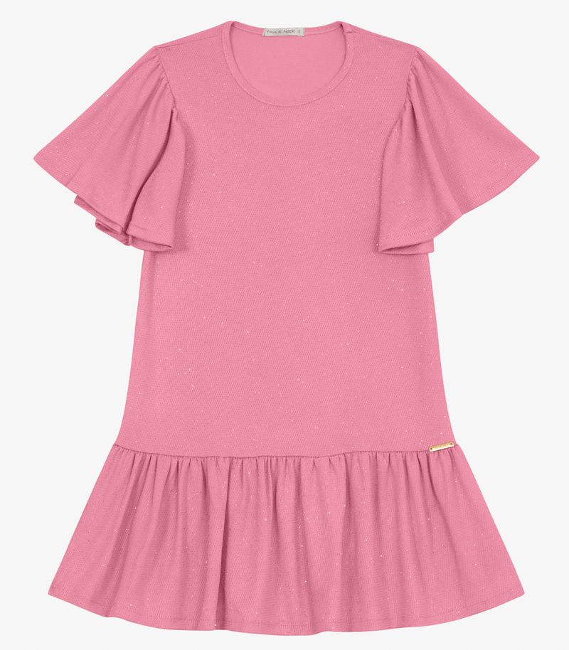 Vestido Infantil Trick Nick confeccionado em Malha Star Shine, leve e delicado. Possui babado embutido nas mangas e barra, com acabamento franzido que dá charme à peça, além de contar com uma plaquinha decorativa. A barra tem bainha fina que valoriza o caimento. Ideal para ocasiões especiais com muito estilo e conforto.