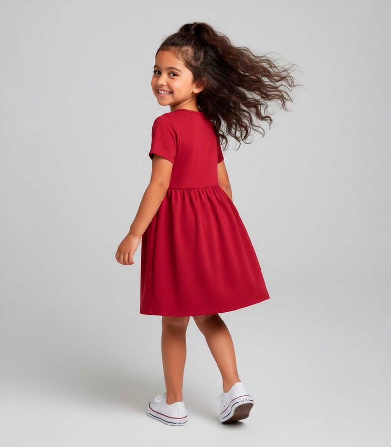 Vestido Infantil Feminino Select, desenvolvido em malha de Molecotton de Algodão Penteado, que garante maciez e conforto para o dia a dia. Possui decote redondo, cava levemente deslocada e mangas curtas, proporcionando um visual moderno e confortável. Apresenta recorte franzido na cintura, que adiciona volume à saia, e estampa localizada de borboleta, trazendo um toque delicado e encantador ao look infantil.