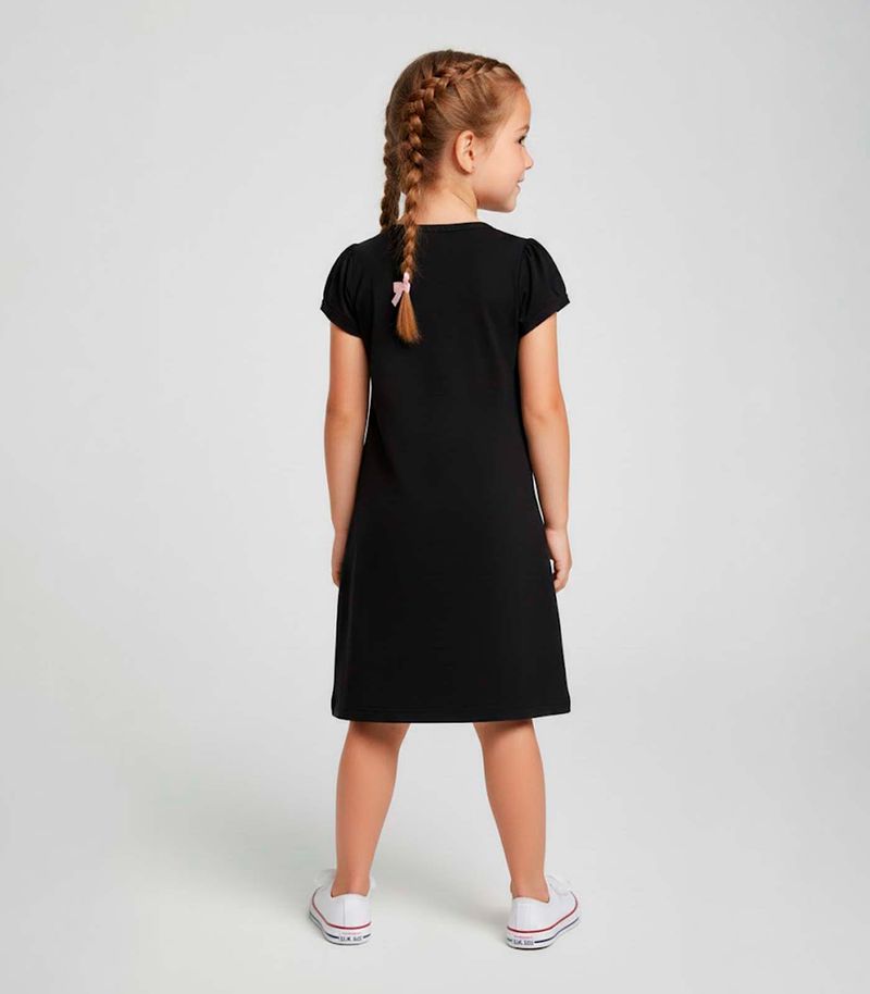 HomeInfantilFemininoVestidosVestido Infantil Manga Curta Estampado Select Preto