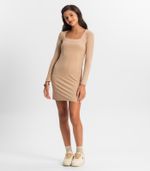 Vestido Juvenil Manga Longa Em Ribana Minty Marrom