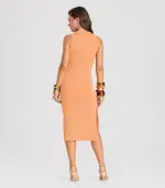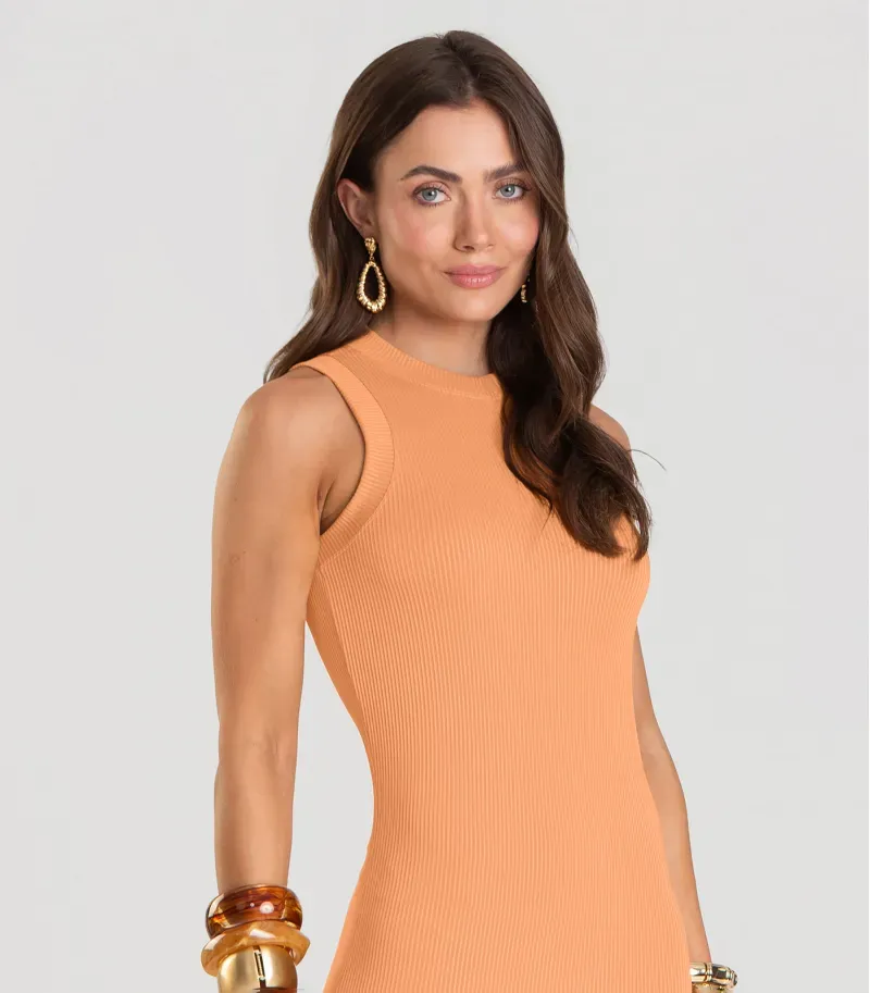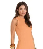 Vestido Midi Dianna, confeccionado em Malha Brisa Canelada, leve e confortável, que valoriza a silhueta. Apresenta decote e cavas duplos, com o canelado na horizontal, oferecendo estrutura e conforto. Possui modelagem justa que realça o corpo e fenda lateral, garantindo mobilidade e estilo. Versátil, pode ser usado em produções casuais ou sofisticadas, adaptando-se facilmente a diferentes ocasiões e combinando com acessórios e calçados variados.