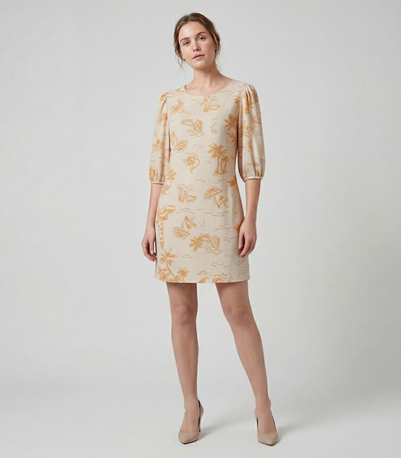 HomeFemininoVestidosMidiVestido Midi Com Manga Flare 3/4 Infinita Cor Bege