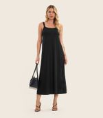 Vestido Midi de Alça em Visco Maquinetada Endless Preto