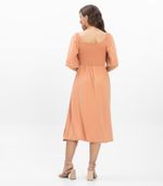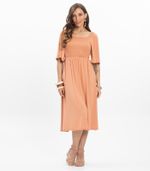 Vestido Midi Feminino Endless, confeccionado em Viscotorcion. Modelo de base lisa, com decote quadrado e delicada fita de sustentação. Mangas com elástico rebatido na costura, proporcionando franzido uniforme. Possui recorte com látex em duas passadas, acabamentos superiores e inferiores com elástico rebatido e bainha na barra para melhor caimento. O recorte horizontal valoriza a silhueta, tornando a peça leve e ideal para dias ensolarados.