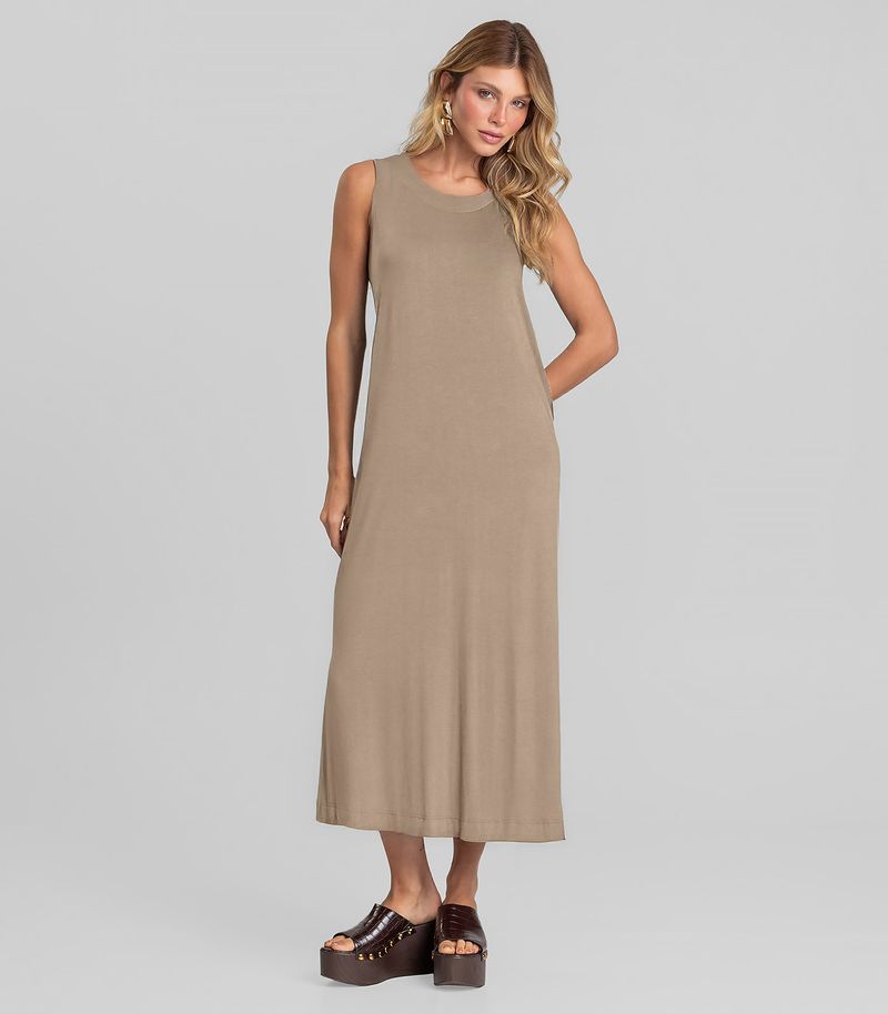 Vestido Midi Feminino em Malha Visco Dianna Marrom