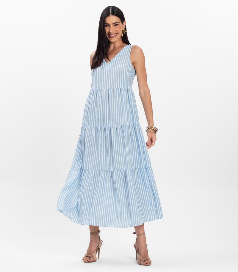 O Vestido Midi Feminino Listrado Decote V Aishty é confeccionado em 100% poliéster, garantindo leveza e conforto. Com comprimento midi e modelo regata, a peça oferece caimento moderno e elegante, ideal para diferentes ocasiões. O decote em V valoriza o colo, enquanto as listras adicionam charme e estilo ao visual. Versátil e sofisticado, o vestido é perfeito para compor looks casuais ou mais arrumados, unindo praticidade e tendência em uma única peça feminina e fashion.