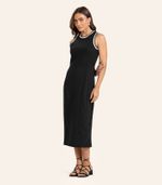 Vestido Midi Feminino Endless, confeccionado em Piquet Verona de caimento estruturado. De base lisa, apresenta dois recortes centrais com pesponto largo, que valorizam a silhueta ao longo do comprimento. O decote levemente arredondado e as cavas recebem acabamento em retilínea pronta, conferindo contraste e sofisticação. Nas costas, recorte central e etiqueta interna reforçam o design refinado. Perfeito para compor produções modernas e casuais.