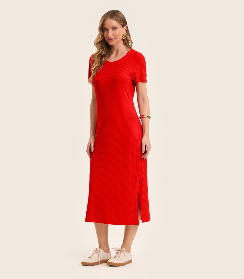 Vestido Midi Ribana Canelada Básico Rovitex Laranja