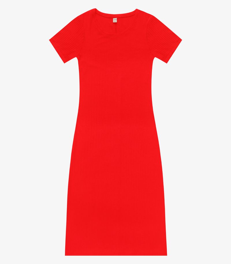 HomeFemininoVestidosMidiVestido Midi Ribana Canelada Básico Rovitex Laranja