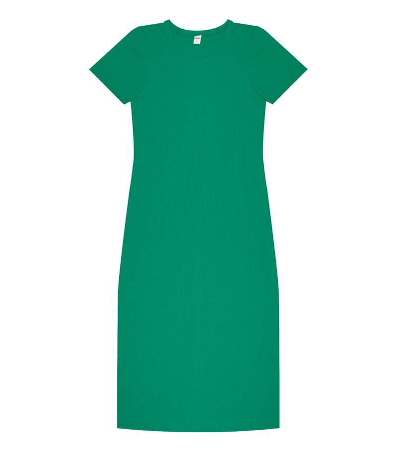 Vestido Midi Ribana Canelada Básico Rovitex Verde